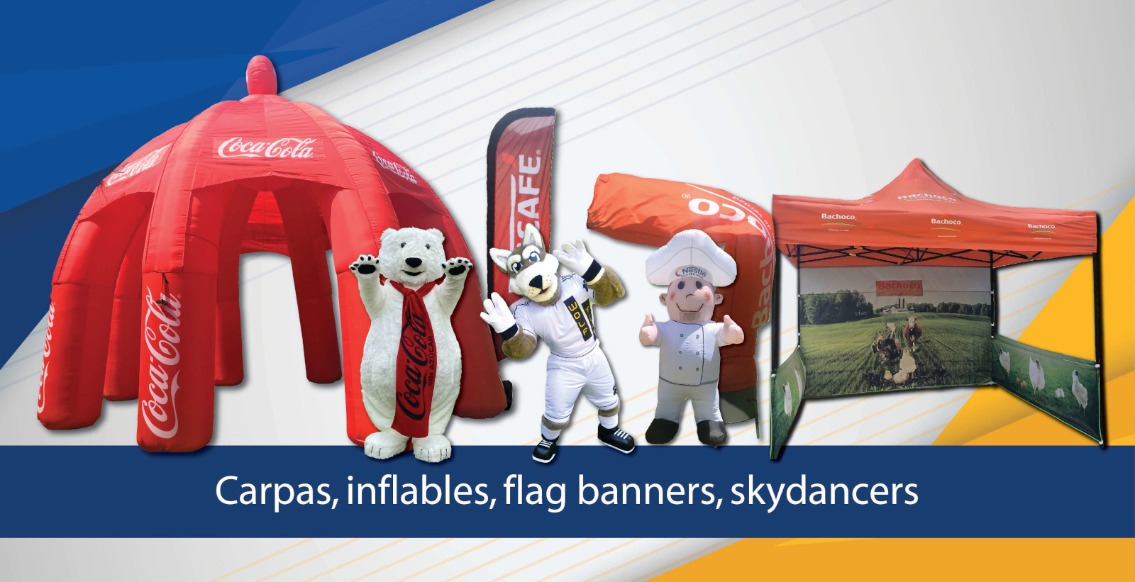 Asimismo, complementamos tus estrategias con la fabricación de botargas, carpas, inflables con motor, réplicas inflables en vinil sellado, muebles y empaques de cartón.